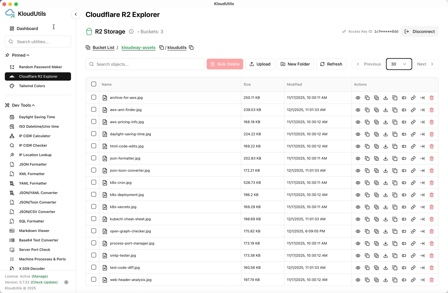- • Added Cloudflare R2 Explorer (aka R2 File Manager which can manage R2 storage with file preview, rename, edit, move, delete, upload and generate presigned URLs. In addition to manage multiple R2 connections for later use.