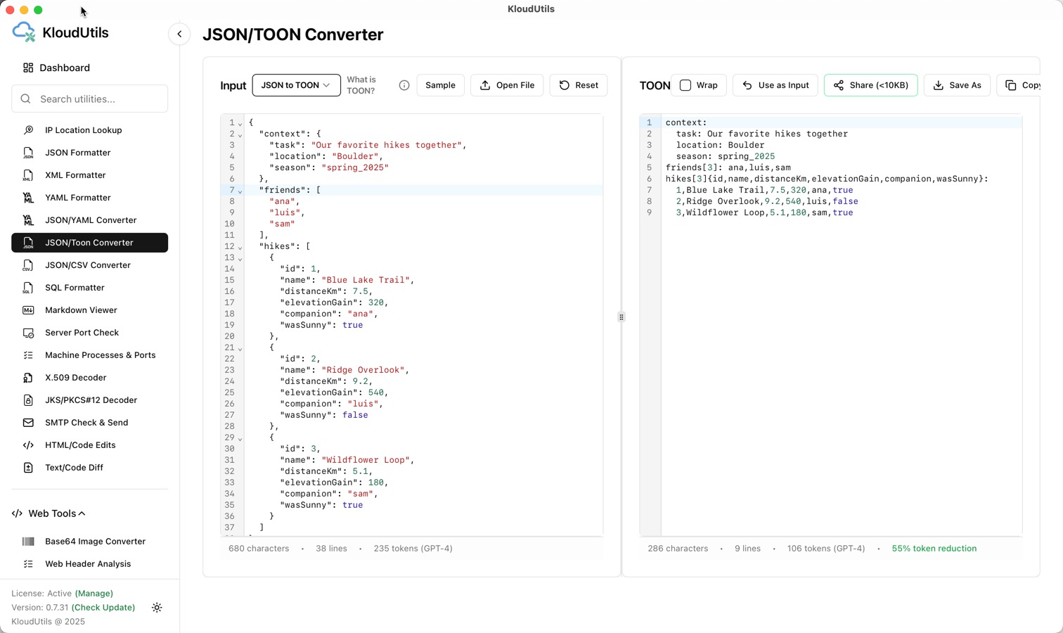 - • Added JSON to TOON (Token-Oriented Object Notation) converter