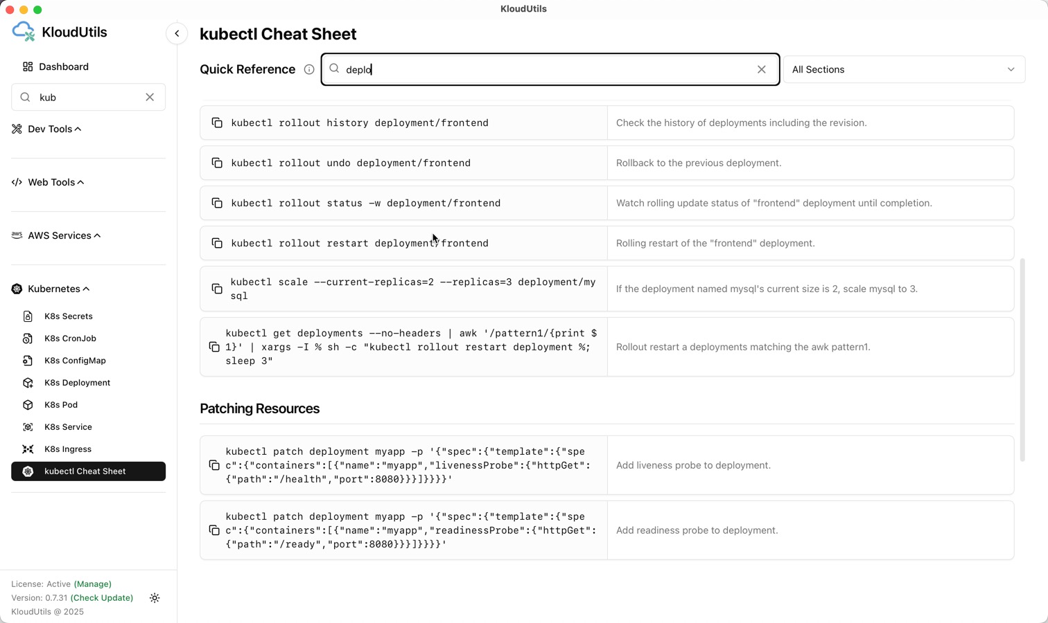 - • K8s Deployment: Create Deployments with resources, probes, and env variables