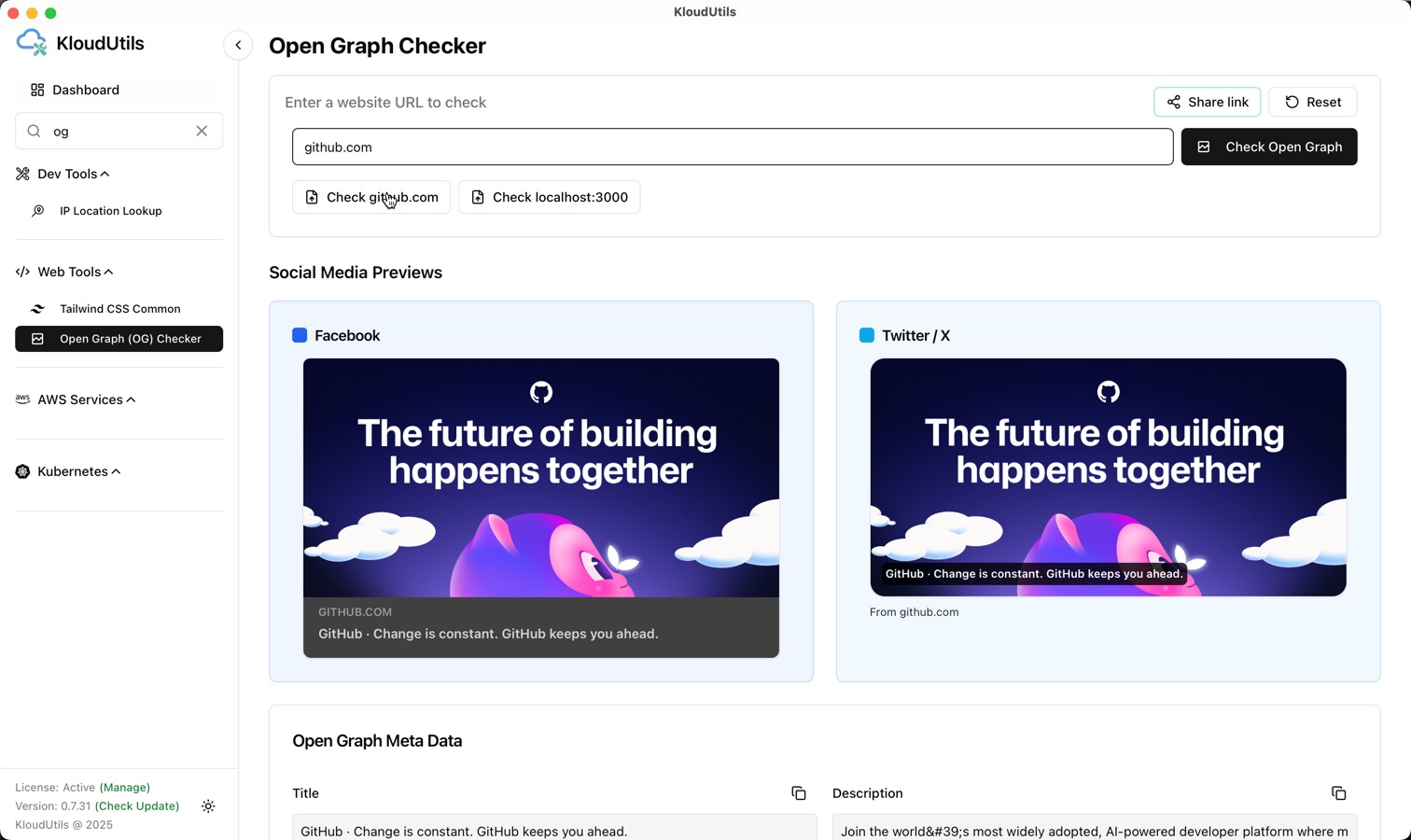 - • Open Graph Checker: Check and preview Open Graph meta tags for websites