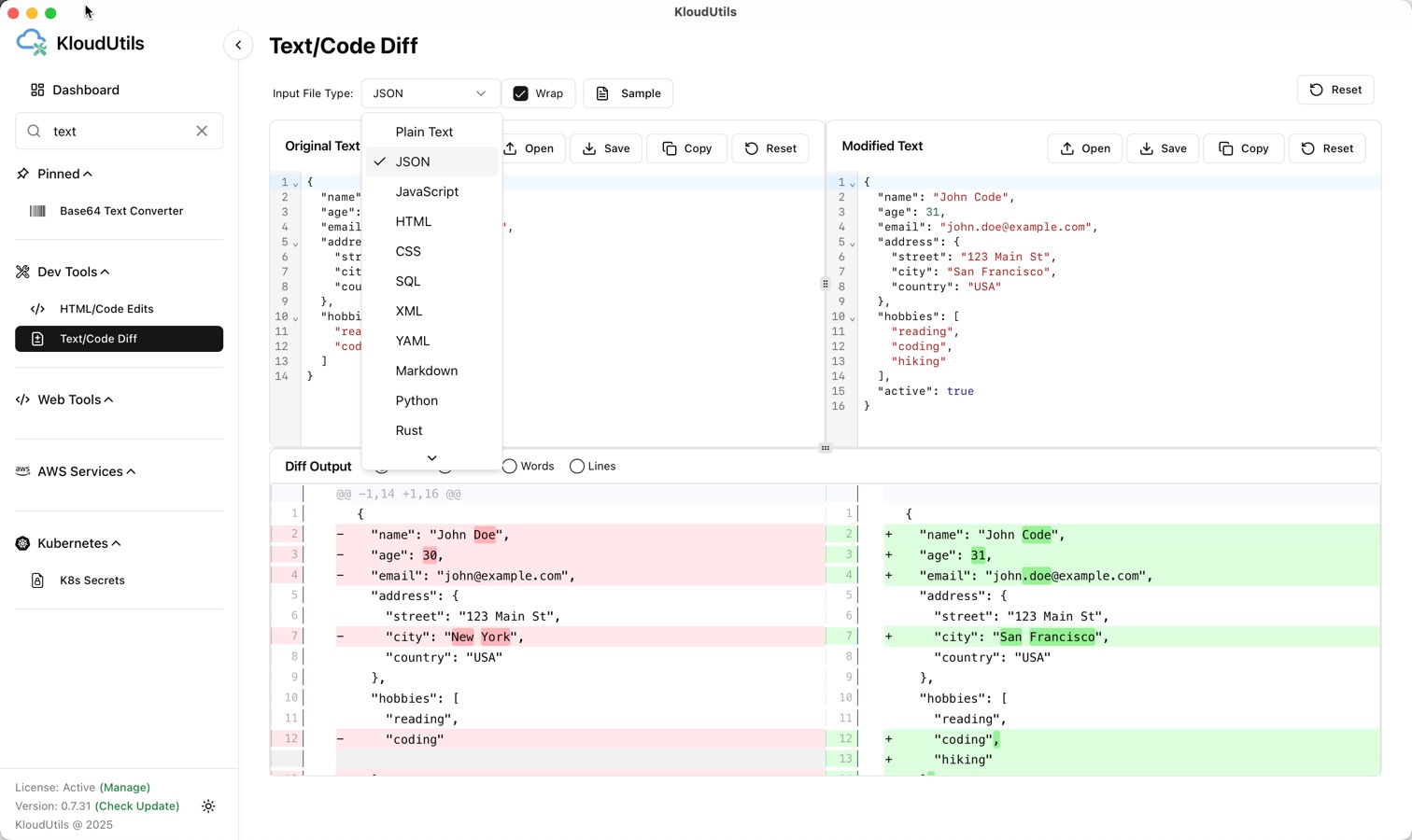 - • JSON/YAML Converter: Convert between JSON and YAML